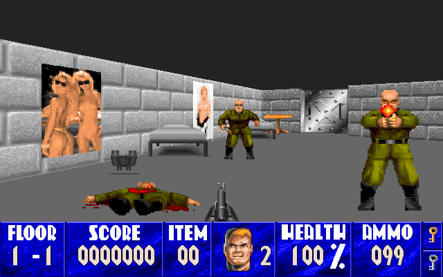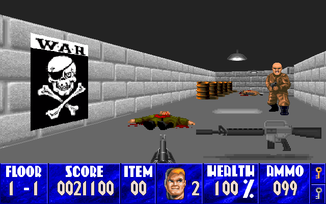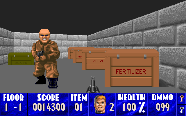 Your name is Lt. Michael F. Blazkowicz, and you come from a long line of military heroes. Your grandfather, William "B.J." Blazkowicz, helped the Allies defeat the Nazis back in World War II, and your father, William Jr., fought against the communists in Vietnam. When the Gulf War broke out, it was your turn to serve your country, and you proudly carried on the fight for freedom. Now you're back home with your wife, son and daughter, enjoying the tranquility of peacetime. But soon, trouble begins to brew anew, and this time the threat doesn't come from any foreign agent, but from some of your own army buddies. They, along with other armed forces personnel all across the country, have formed a secret Neo-Nazi, white supremacist organization, amassed an arsenal of stolen weapons and equipment, and plotted a war that will begin with the terrorist bombing of various government buildings. Can you stop the same evil your ancestors fought against from happening on your very own home soil? |