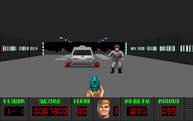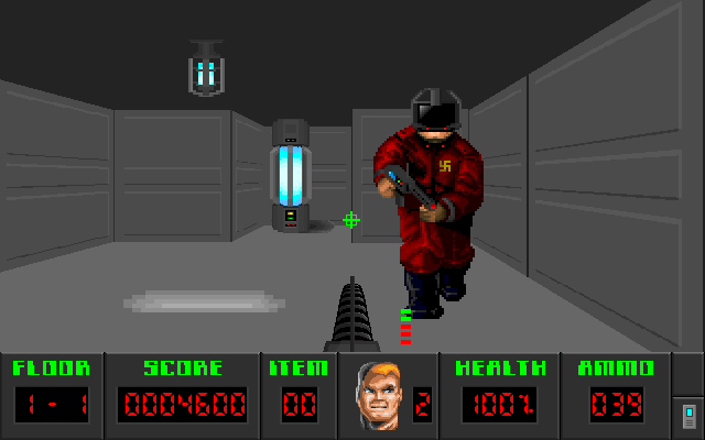 | Picking up where the original Astrostein left off, Astrostein 2 delivers 10 more heart-pounding levels of sci-fi action. You've managed to make it to the Nazi moonbase in the shuttle you stole at the end of the previous scenario, but as soon as you step out into the landing bay, you're immediately surrounded! Apparently, someone still left alive aboard the ship you escaped from radioed ahead and warned them you were coming. Your only hope of surviving is to stow away aboard a cargo ship bound for earth, but before you can do that, you've got to fight your way through the entire base. |