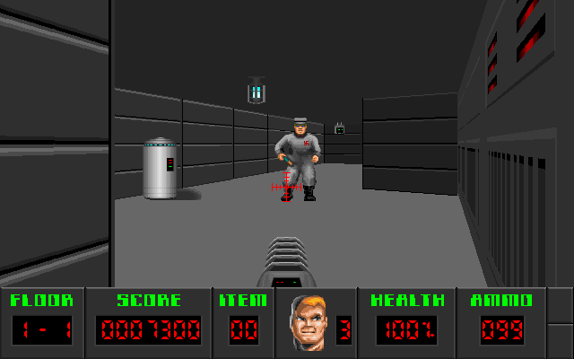 | In Astrostein, you'll blast your way through 30 levels of non-stop action, facing down hundreds of spaceship personnel and mechanical droids armed with laser rifles and photon cannons. You'll explore many areas throughout the vast ship, including the bridge, engineering, sickbay, and the hangar deck. And in Astrostein, enemies that you kill don't just shout and plop on the floor -- they dematerialize! |